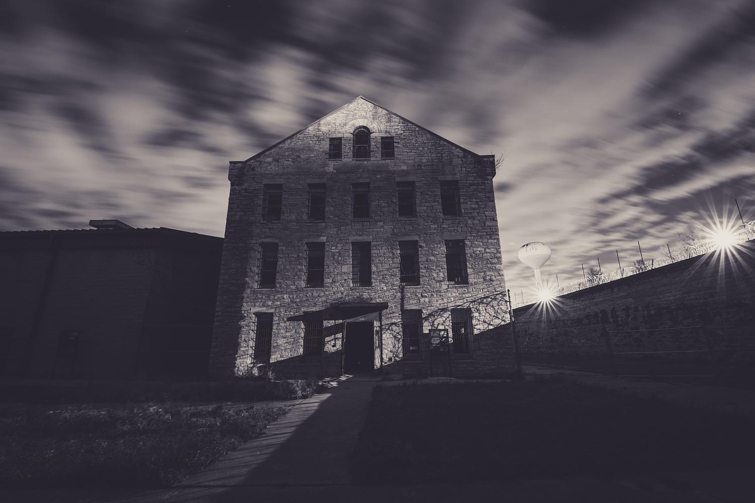 This is a night photograph of Illinois State Prison At Joliet Hospital. Many of strange thing lurk inside.